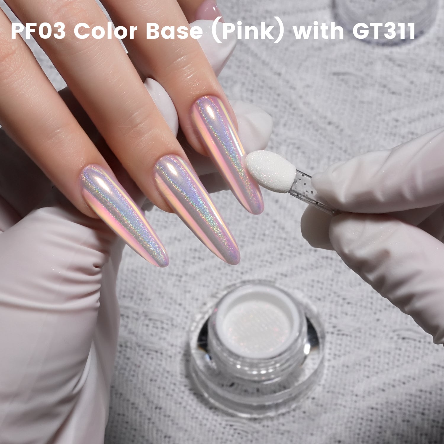 What You Get: One 0.3 g jar of YOKEFELLOW GleamTap Cushion Aurora Chrome Nail Powder. (GT311 Pinkstar Prism - Blue Pink with Pink Sheen and Holo Aura)